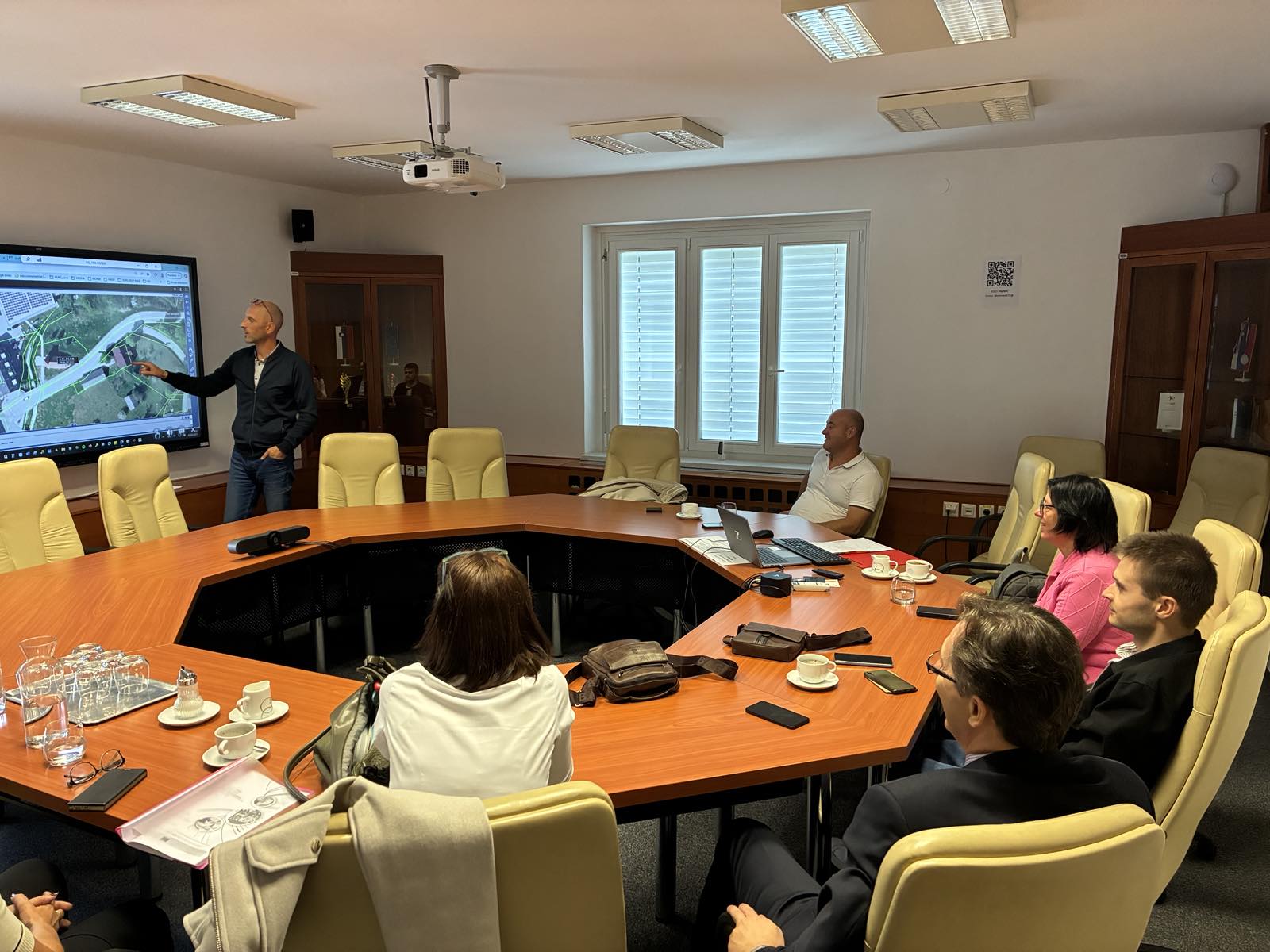 На средбата со претставниците на општината Ново Место, г-от Петер Гершич, Раководител на канцеларија за развој и г-от Мирослав Стрниша, Раководител на ИТ Секторот, учесниците подетално се запознаа со пристапот за унапредување на дигиталната трансформација, апликација на дигиталните иновации и ИоТ за одржлив урбан развој како и промовирање на инклузивно и транспарентно управување преку соодветни граѓанските услуги, како што се внатрешните административни платформи, системите за паметни градови и дигиталната платформа SITIUM – интегрирано решение за граѓански услуги и општински операции. Учесниците имаа можност и да ги разгледаат и платформите за јавните е-услуги и е-демократија т.е. системите за вклучување на граѓаните, дигиталниот пристап до услугите и алатките за партиципативно управување.
